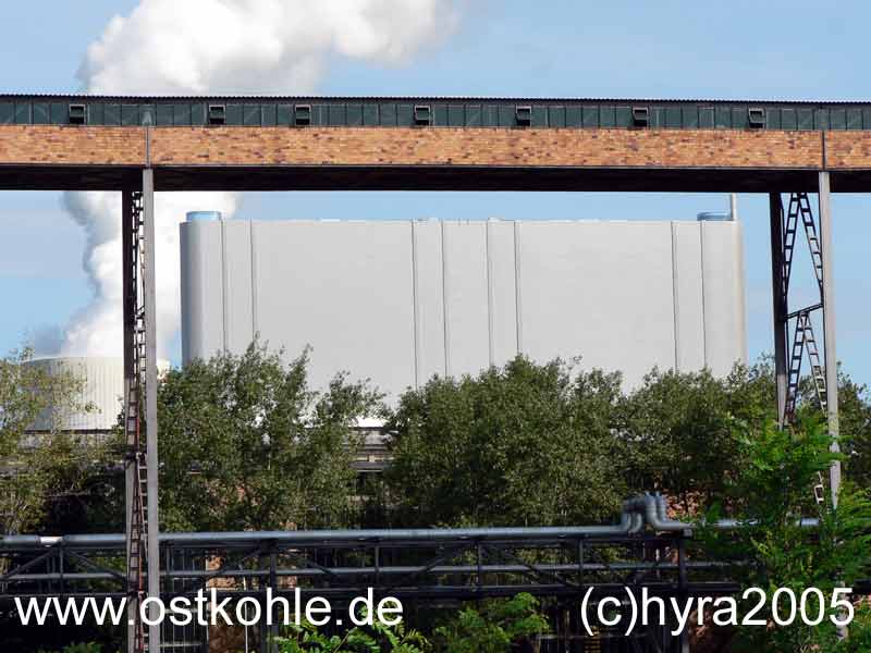 Kohletransport über Bandanlagen zur Trocknung - hinten der Kraftwerksneubau