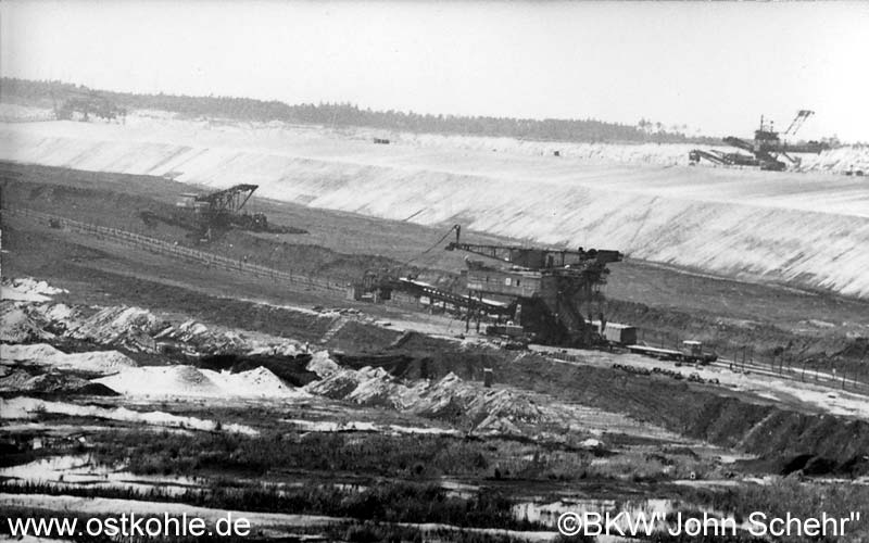 Blick in die Grube mit den Gewinnungsgeräten Bagger 139 und 278