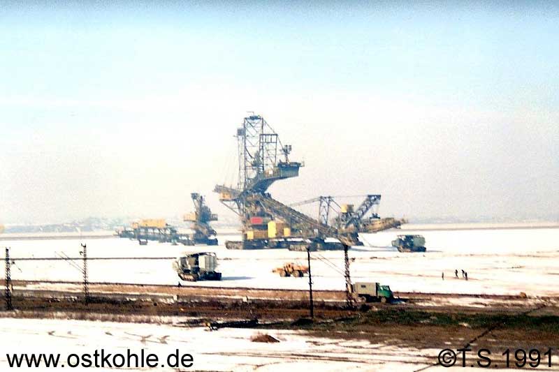 Übergabestation, Bandwagen 830, Absetzer 1116, 2 Kabeltrommelraupen