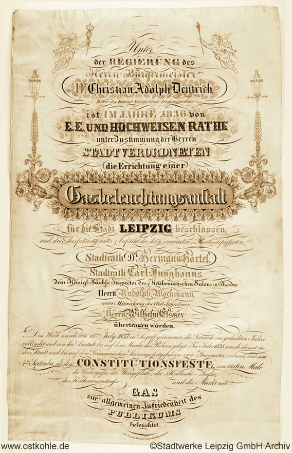 Urkunde zur Errichtung einer Gasbeleuchtungsanstalt