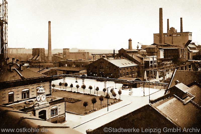 Gaswerk II - Das Verwaltungsgebäude mit der Uhr steht heute noch
