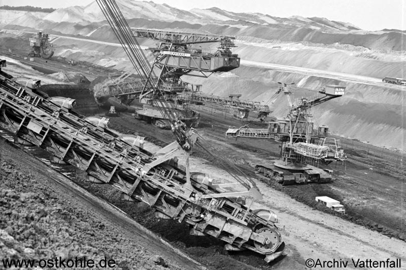 Eimerleiter eines Es 3750 - dahinter Schaufelradbagger 1512 SRs 1300 und ein Bandwagen BRs 1400