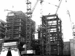 Der Erste Kühlturm wird auf seine Endhöhe von 113 m gebracht