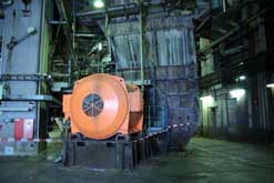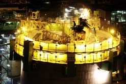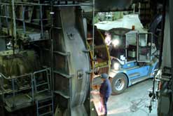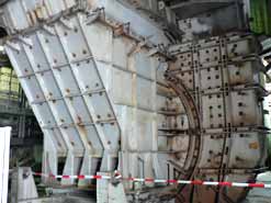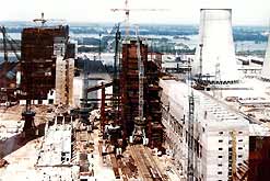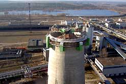 Generator wird auf das Fundament gesetzt - Schornstein II erreicht die 300 m
