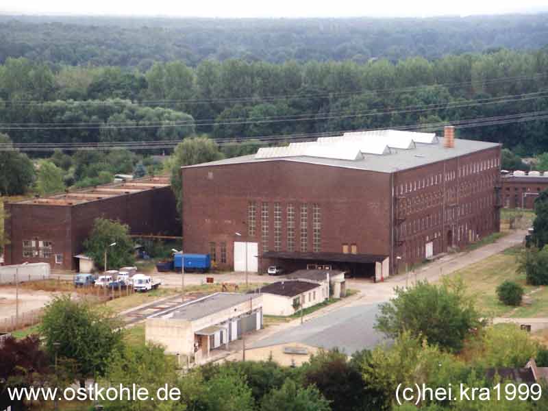 “Weiter südlich sehen Sie unmittelbar vor uns eine große dunkelbraune Werkstatthalle und dahinter viereckige offene Boxen. Hier war während des 2.Weltkrieges erstmals in Deutschland eine Hochspannungsgleichstrom-Übertragungsanlage (HGÜ) durch die AEG errichtet worden, bei der unterirdische Starkstromleitungen das Kraftwerk “Elbe” mit Berlin, später mit Linz in Österreich verbinden sollten. In den Boxen standen riesige Quecksilberdampfgleichrichter - Ein Stromrichterwerk. 60.000 Kilowatt mit 440.000 Volt Gleichspannung sollten durch zwei Einleiter-Hochspannungskabel übertragen werden. Diese kriegswichtige Anlage ging nie in Betrieb. Sie war erst wenige Wochen vor Kriegsende fertiggestellt. Die sowjetische Besatzung untersagte den Probebetrieb, die Anlage wurde bis auf die Unterirdische Kabeltrasse demontiert.”