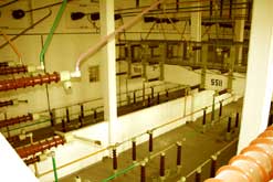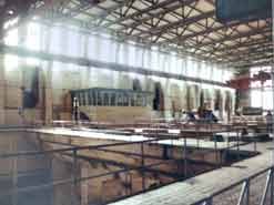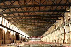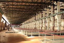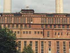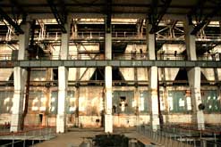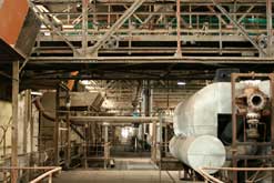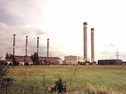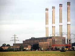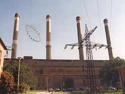 Das Kesselhaus hat eine Höhe von 40 m und ist 41 m breit und 117 m lang Die Rauchgase werden über zwei 140 m hohe Schornsteine abgeleitet
