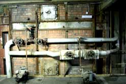 Kessel- und Maschinenhaus wurden zweimal um 60 m nach Westen verlängert. Die Rauchgasentsorgung erfolgt über vier 140 m Schornsteine