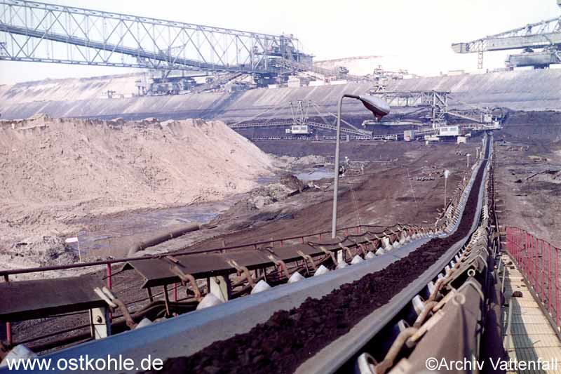 Kohlebandanlage mit Bagger 1482 SRs 470 - darüber Förderbrücke F 45 Nr.29 mit Bagger 1253 / 1260 Es 1600