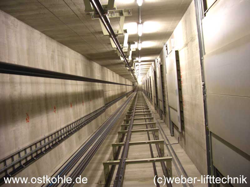 Die Aufzüge haben eine Förderhöhe von 135 m, eine Nutzlast von 5000 t und fahren 2,5 m/s.