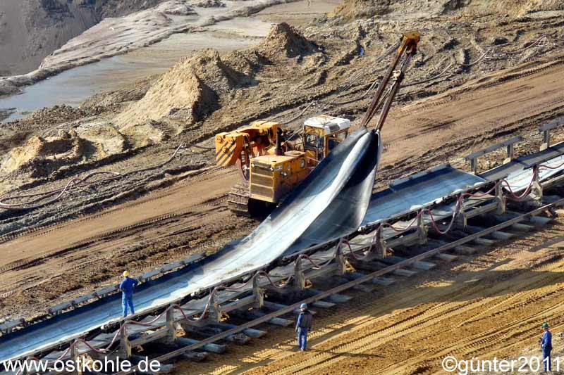 Der Fördergurt von Band 54 ist getrennt, wird zurückgezogen und abgelegt