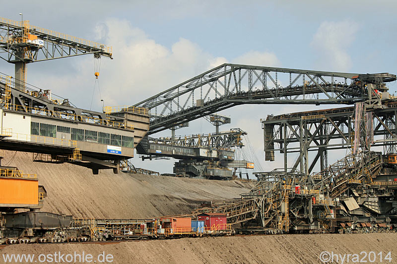 Förderbrücke F 60 Nr.33 mit Bagger 1287 Es 3150 (links) und Zubringer mit Bagger 1288 Es 3150