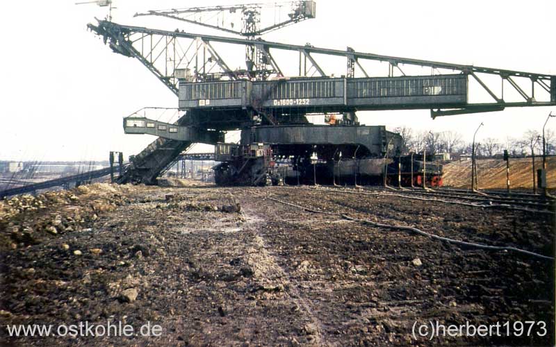 Eimerkettenbagger Ds 1600 - 1252 Links die Werkstätten Schacht 1 Mühlrose, davor das Kohleband.