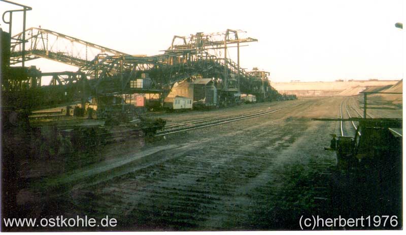 Die vier Schienenstränge des Es 3150 und der Zubringer zur Förderbrücke