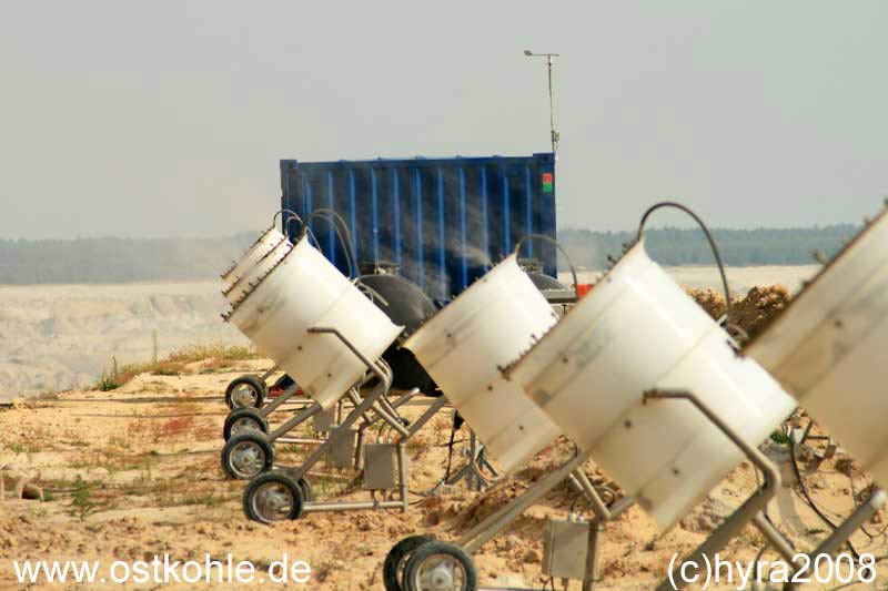 20 Nebelkanonen an der Abraumbandanlage schützen Weißwasser vor der Staubentwicklung