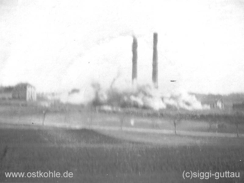Sprengung der Reste der Bkf und der zwei 52 m hohen Schornsteine