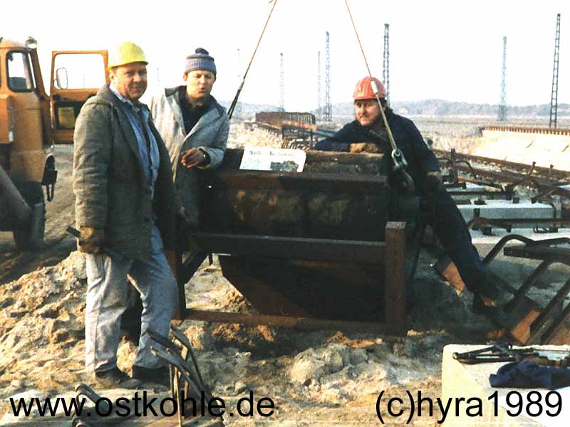 ADK 70 - Obermonteur - Kranführer - ein Teil der Schurre - einfacher Monteur (hyra) - dahinter das Platzband - rechts der Kohlebunker
