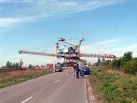 Am 17. September querte ein Gerätekonvoi bestehend aus Schaufelradbagger 1553 und einem Bandwagen die Schienen und die Grüne Magistrale auf dem Weg vom Abbaufeld Profen Süd ins Abbaufeld Schwerzau. Die Strecke von rund 9 km wurde mit der Geschwindigkeit von sechs Metern pro Minute bewältigt. Quelle: www.mibrag.de