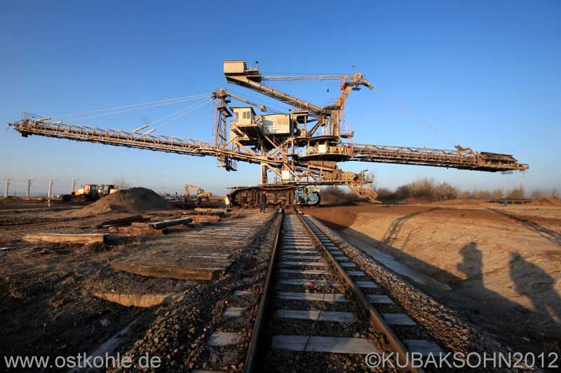Bandwagen auf dem Weg über die Schienen der Werkbahn