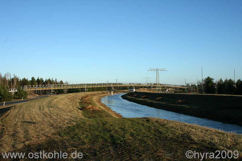 Die neue Bandbrücke überquert den Weißen Schöps sowie zwei Straßen