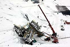 Der verunglückte Schaufelradbagger 1554 konnte Dank der großen Einsatzbereitschaft und Umsicht der MIBRAG-Mannschaft, die unterstützt wurde von der GALA-MIBRAG GmbH, den Spezialisten von Mammoet Deutschland und weiterer Partner am 25. Januar 2013 erfolgreich und unfallfrei aufgerichtet werden. Das langsame Absenken und Aufstellen des Fördergerätes dauerte etwa vier Stunden. Der Schaufelradbagger wurde stabilisiert und wird in den nächsten Tagen auf Schäden untersucht. Zeitz, 25.01.2013 www.mibrag.de