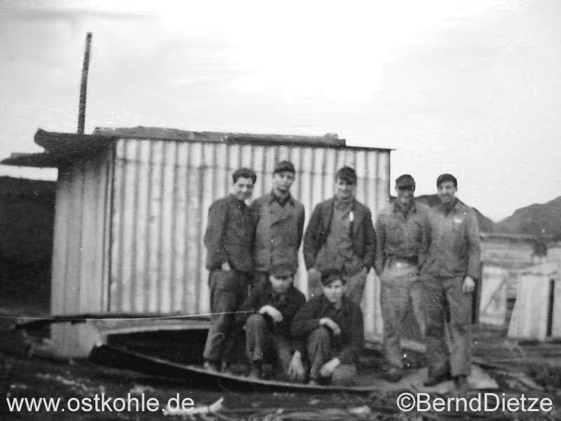 Die Männer der ersten Stunde vor ihrer Unterkunft