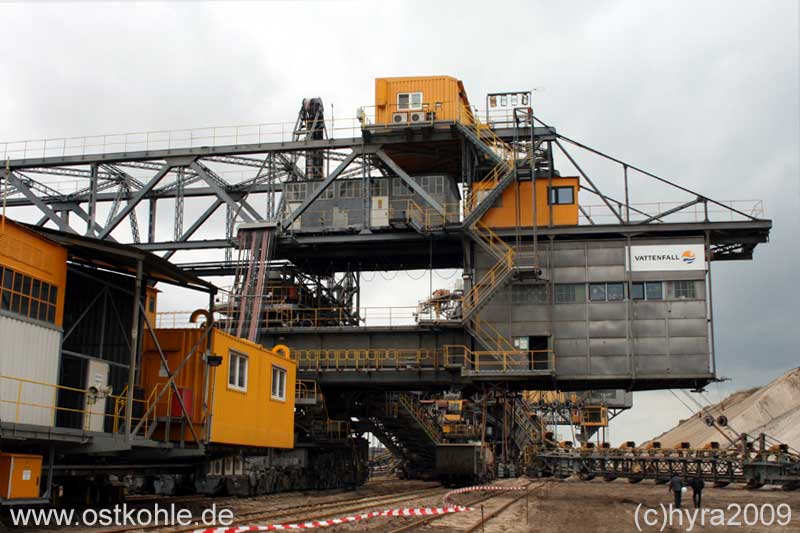 F 34 - baggerseitige Brückenstütze mit Rollentisch, Schienenfahrwerk und Trafohaus