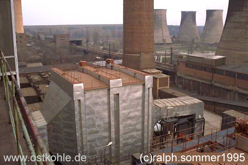 Rekonstruierten E-Filter Kessel 4, dahinter Schornstein 2 (120m)