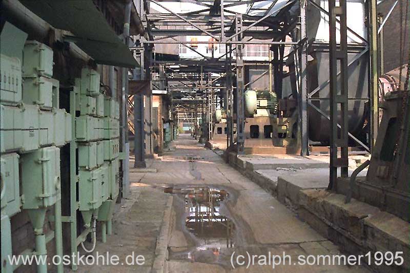 Gasse zwischen den E- Filtern (links) und den Saugzügen (rechts)