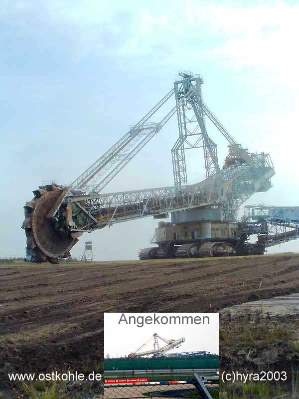 Schaufelradbagger 1473 SRs 1500 auf seiner letzten Reise. Am Lausitzring (Eurospeedway Lausitz) soll er als Landmarke stehen und an die Zeit der Kohle im Senftenberger Revier erinnern.