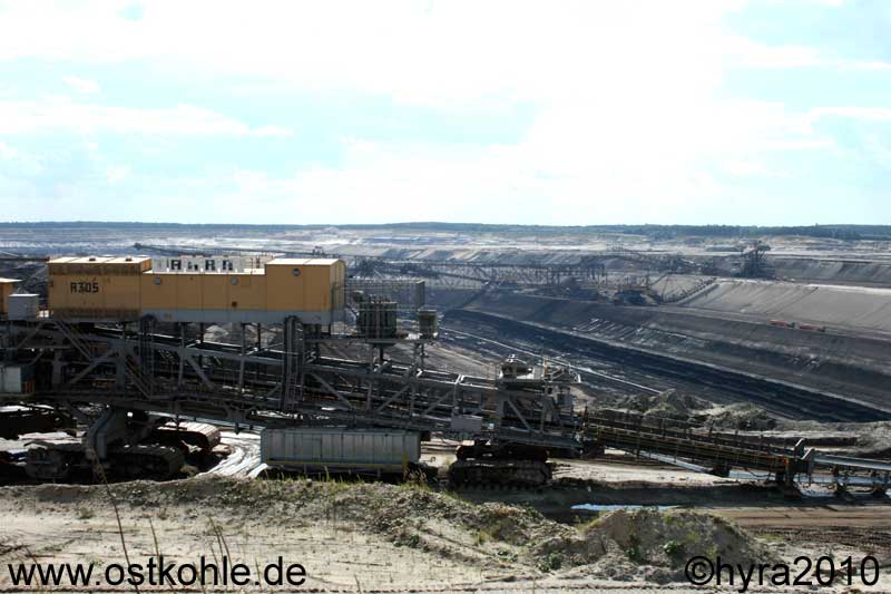 Blick vom Aussichtspunkt Nord über die Antriebsstation 305 in die Grube und auf die Förderbrücke