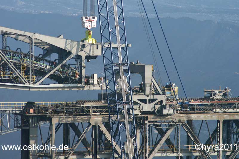 Stützwagen wird mit einer Seilwinde aus dem Zubringer gezogen
