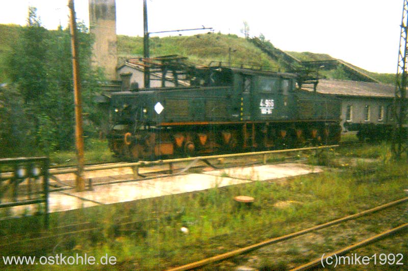 EL2 4-966 - hat mit Lok 4-968 den Reichsbahnanschluß bedient. Dazu gab es ein Dreischienengleis von Großzössen bis zur Kohleverladung am Stellwerk 9.